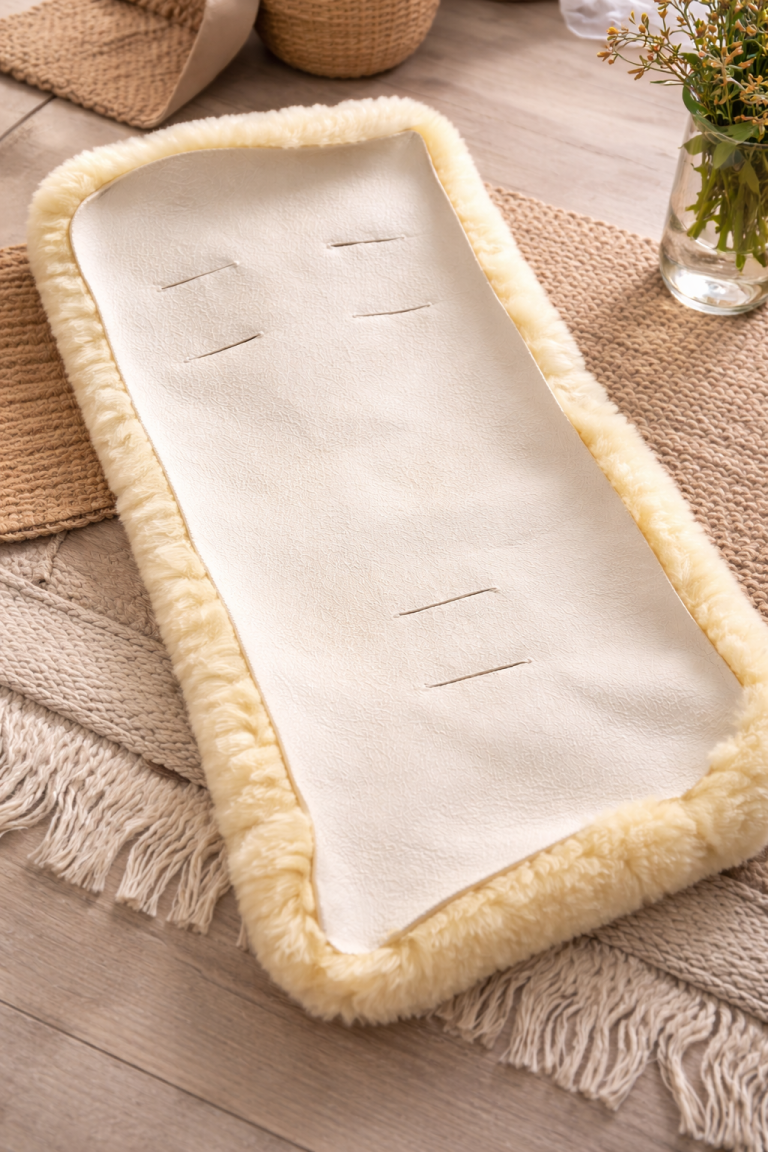 Besonders sanft und angenehm zur empfindlichen Babyhaut: unser waschbares Schaffell für Kinderwagen, Buggy oder Autositz. Das medizinisch gegerbte Fell ist auf ca. 30 mm geschoren und passgenau zugeschnitten (80 × 35 cm). Durch die bereits eingearbeiteten Gurtschlitze lassen sich die Sicherheitsgurte verschiedenster Babyschalen und Kindersitze problemlos führen. Das Fell ist atmungsaktiv und wirkt temperaturausgleichend – ideal für den ganzjährigen Einsatz: angenehm kühlend im Sommer und wohlig wärmend im Winter. In sorgfältiger Handarbeit in unserer Schwarzwälder Traditionsgerberei gefertigt, steht dieses Schaffell für Beständigkeit, Qualität und echte Handwerkskunst.